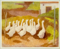 Tryckark med 5 olika vykortsmotiv. Finns även i 5 olika urklipp, ett för varje motiv. Se Foto: LM-T-GLi_144a-d. Baksida: linjer för vykort. Förlag: A.B Hallins Konsthandel. Lite trasigt.