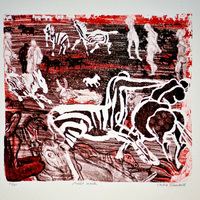 Konstblad. Cecilia Frisendahl, Hästar Hundar Zebror