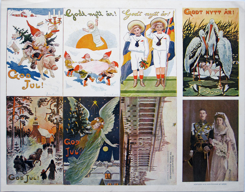 - Brevkort med 6 olika motiv för jul och nytt år av Jenny Nyström samt 2 foto av riksdagshus och hertigparet av Skåne.
