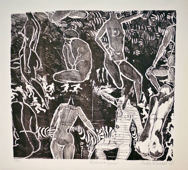- Stenlitografi i brunsvart. Handtryckt i avdrags- /rivarpress av Ture Mattsson.